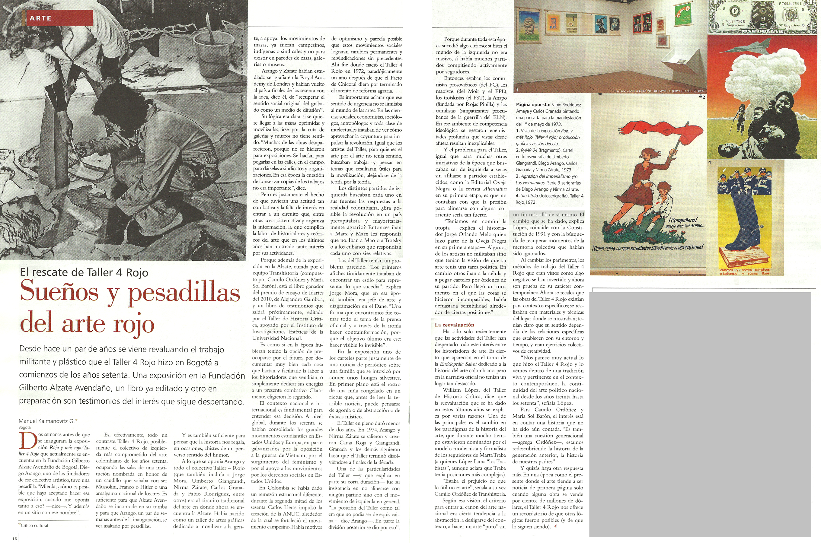 Taller 4 Rojo. Fundación Gilberto Alzate Avendaño" por Marta Rodríguez en ArtNexus (Septiembre de 2012, p.106-107) / ENLACE