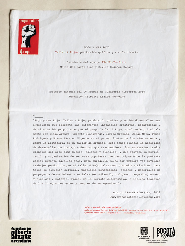 El libro-catálogo de "ROJO Y MAS ROJO. Taller 4 Rojo; producción gráfica y acción directa" será publicado en 2014